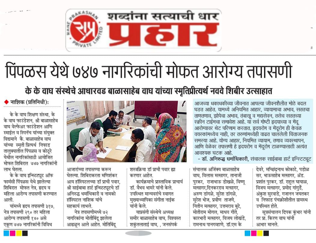 Health Checkup camp at Pimplas news in Dainik Prahar on 02.09.2025